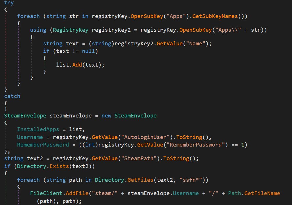 Abaddon implements data-stealing feature, it was designed to steal multiple data from the infected host, including Chrome cookies, saved credit cards, and credentials, Steam credentials, Discord tokens and MFA information.