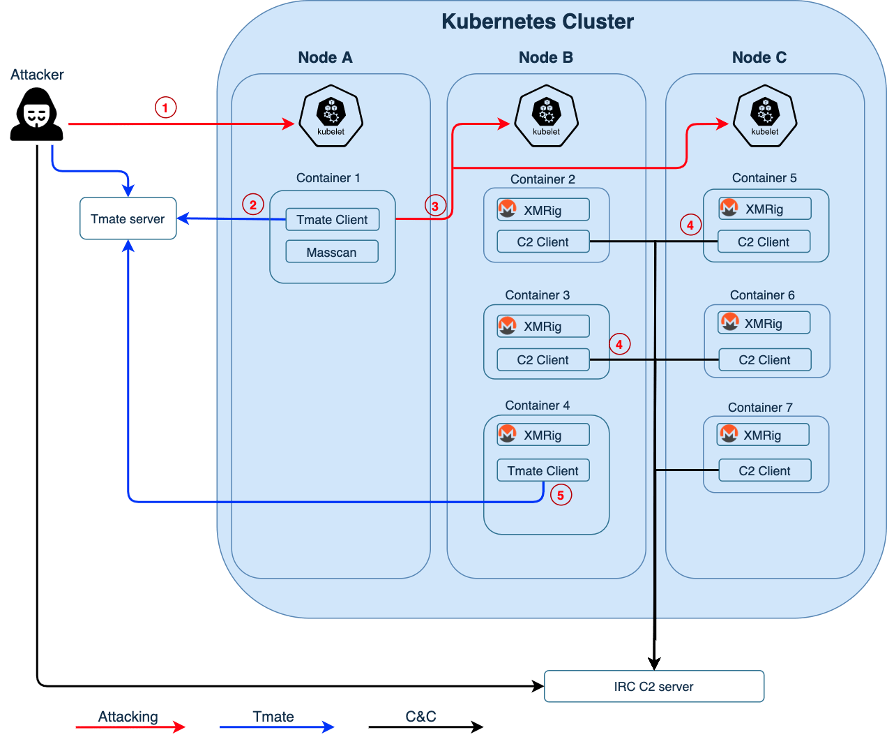 The hackers leveraged misconfigured kubelet to gain access to the Kubernetes cluster, then attempted to spread over as many containers as possible and eventually compromise them cryptojacking miners.