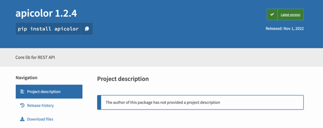 The package was uploaded to PyPI on October 31, 2022, it had a vague header stating this is a ‘core lib for REST API’.