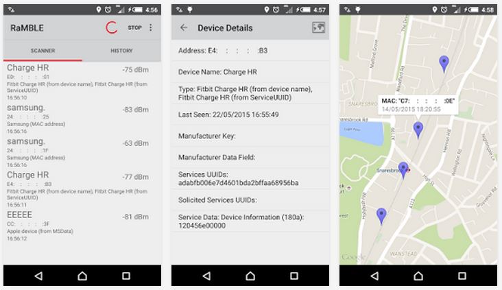 The experts have also developed a proof of concept Android app, dubbed RaMBLE, for scanning, logging and mapping Bluetooth Low Energy devices such as iBeacons and fitness trackers.