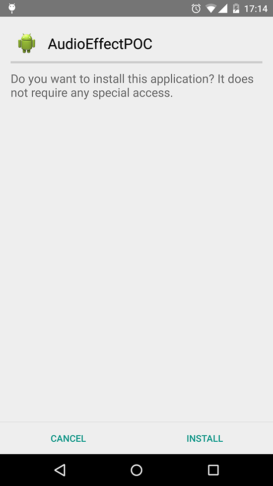 Once installed the malicious app on the device, the app crashes the Android mediaserver component by triggering the heap overflow for the pReplyData buffer. In case the mediaserver component does not crash, the POC app will be closed and run again.