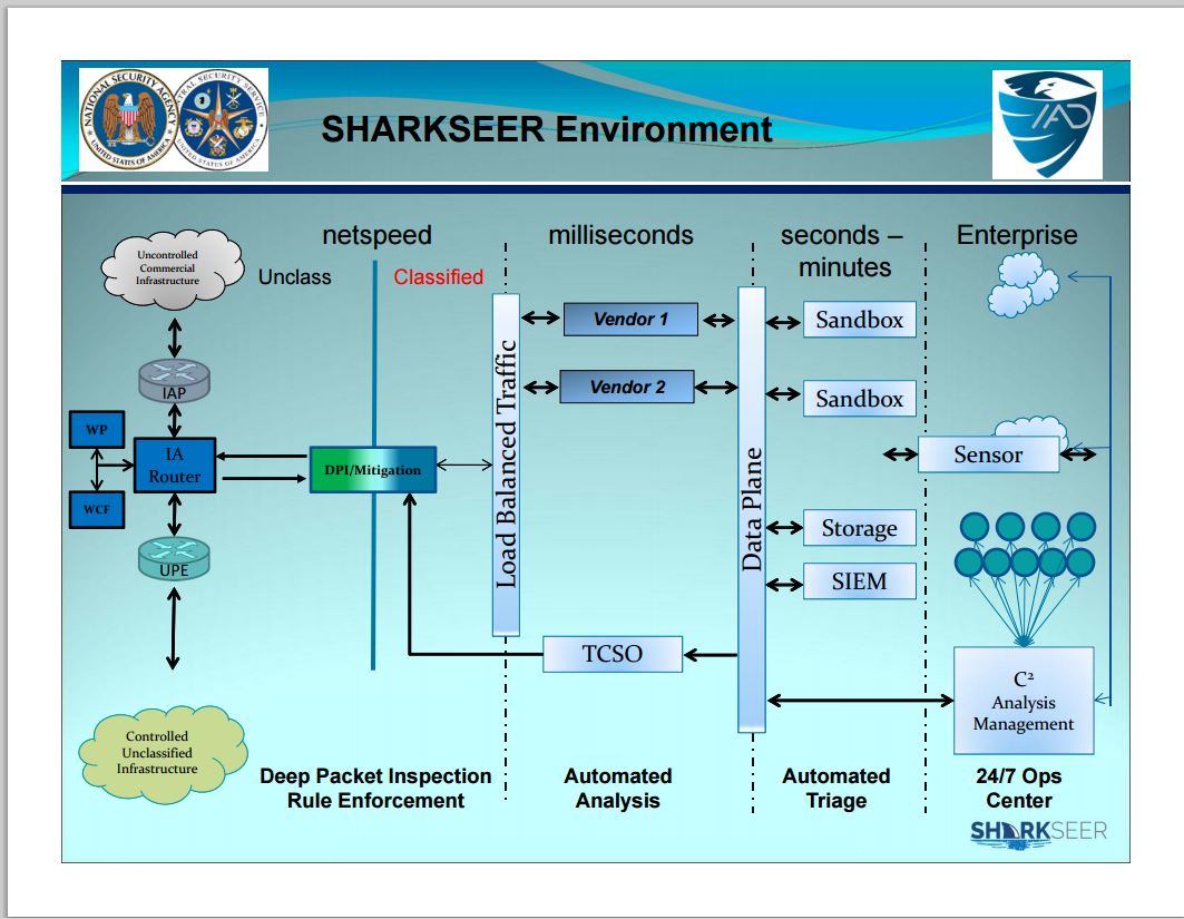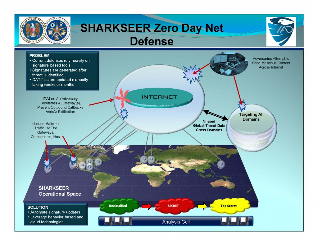 The US Government has published the slides related to the NSA SHARKSEER Program, a project that aims to detect and mitigate web-based malware Zero-Day and Advanced Persistent Threats using the COTS technology.