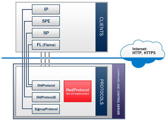 Last May The Iranian Computer Emergency Response Team (MAHER) detected a new targeted malware which hit the country, that has been named Flame, also known as Flamer or Skywiper, due the name of its main attack module. MAHER wasn’t the only one to detect the agent, also Kaspersky Lab and CrySyS Lab identified the new dangerous malware, recognized as a powerful cyber espionage tool kit, that hit mainly Windows systems of Middle East area. The researcher demonstrated the state-sponsored origin and the link with the cyber weapon Stuxnet dating, in a first analysis, the development of the agent to the same period of the famous virus that hit Iran. Further analysis conducted in June demonstrated a disturbing scenario, according the investigation first use of Flame, initially thought to have begun in 2010, appeared to be the 2006 but what is surprising is that C&C server were able to use different communication protocol probably used to “converse” with different clients. The experts noted four different protocols used to control four different types of malware named SP, SPE, FL and IP where FL stands for Flame and according to the code analyzed the remaining clients are similar agents. The protocol are: