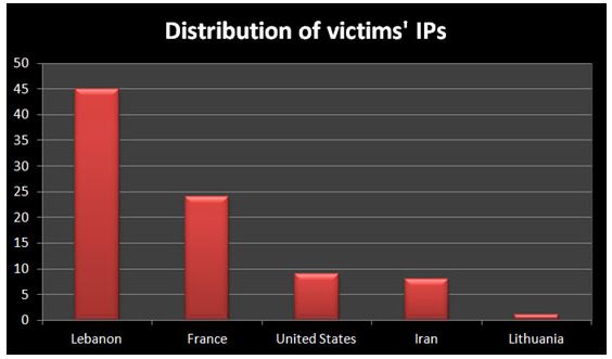 SPE does not have a clear geographical bias, the researchers found the usage of different modification against different countries such as Lebanon, Iran, Kuwait, Palestine and Qatar. The two main locations of victims are Lebanon and Iran.